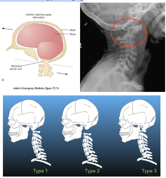 Highly unstable injury that is also called “internal decapitation” as it results in complete dissociation of C1 from the occiput due to rupture of the transverse ligaments stabilizing the atlanto-occipital joint