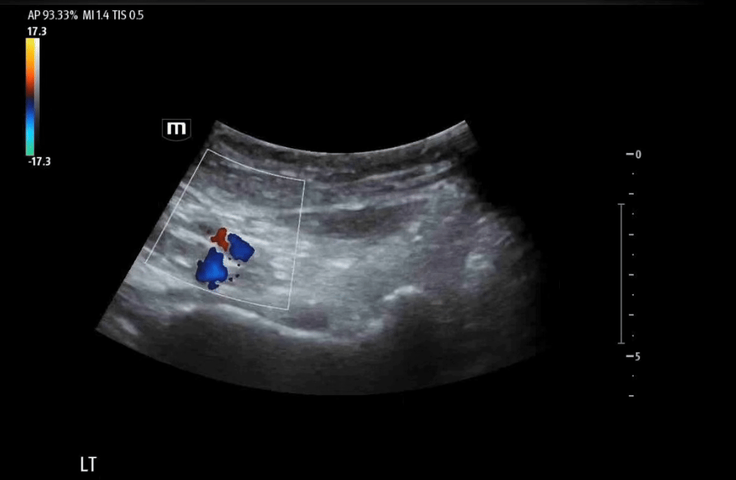 Our ultrasound team offered a PENG nerve block as non-opioid adjunct to pain management and the daughter agreed.